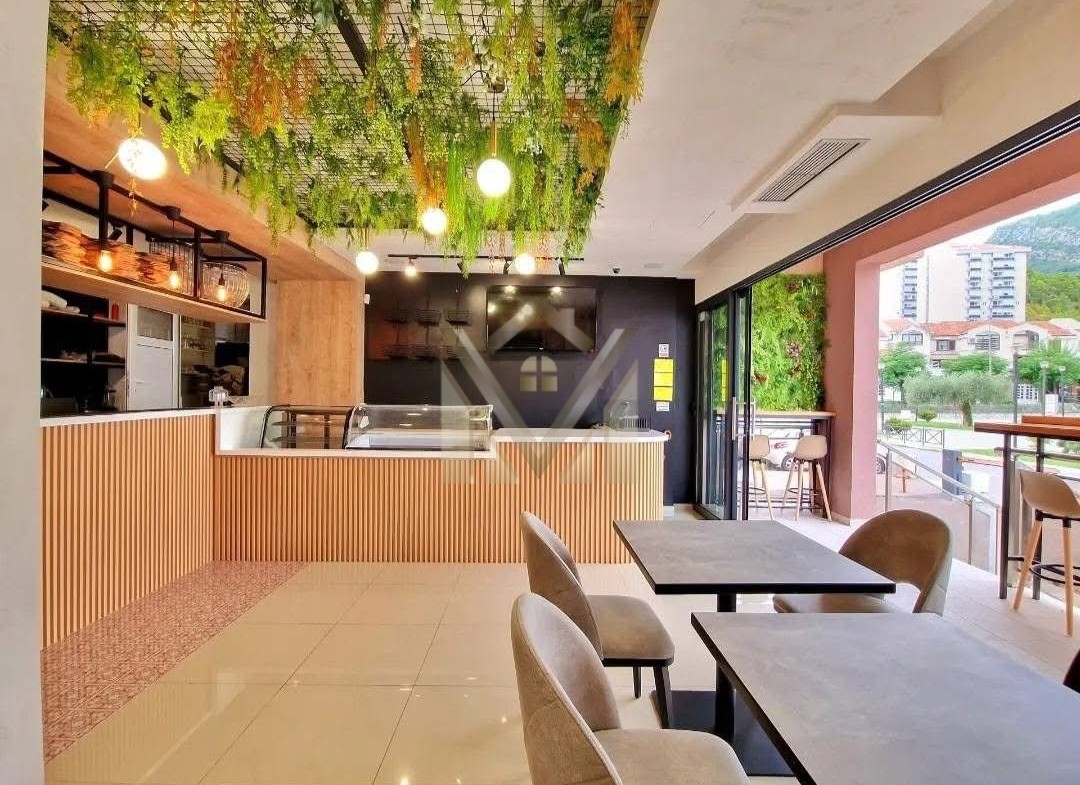 A fully equipped and established restaurant of 100 m² is available for rent in an excellent location in Budva, close to the Academy of Knowledge (15 m) and Mega Mall (50 m), in a modern building constructed in 2017.