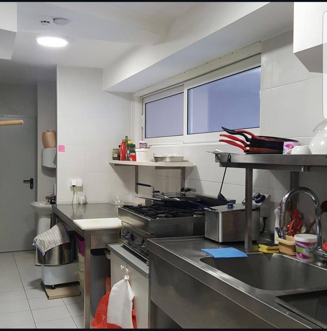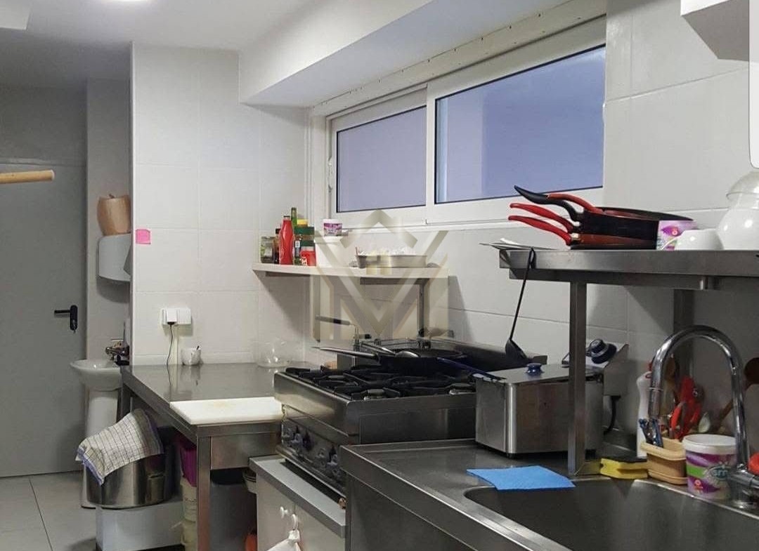 The space consists of a professionally equipped HACCP-standard kitchen with inox equipment, refrigeration and thermal appliances, and ventilation system, as well as a dining area with a bar, full inventory, and furniture. The property includes two toilets, video surveillance, an alarm system, fire protection, and full air conditioning.