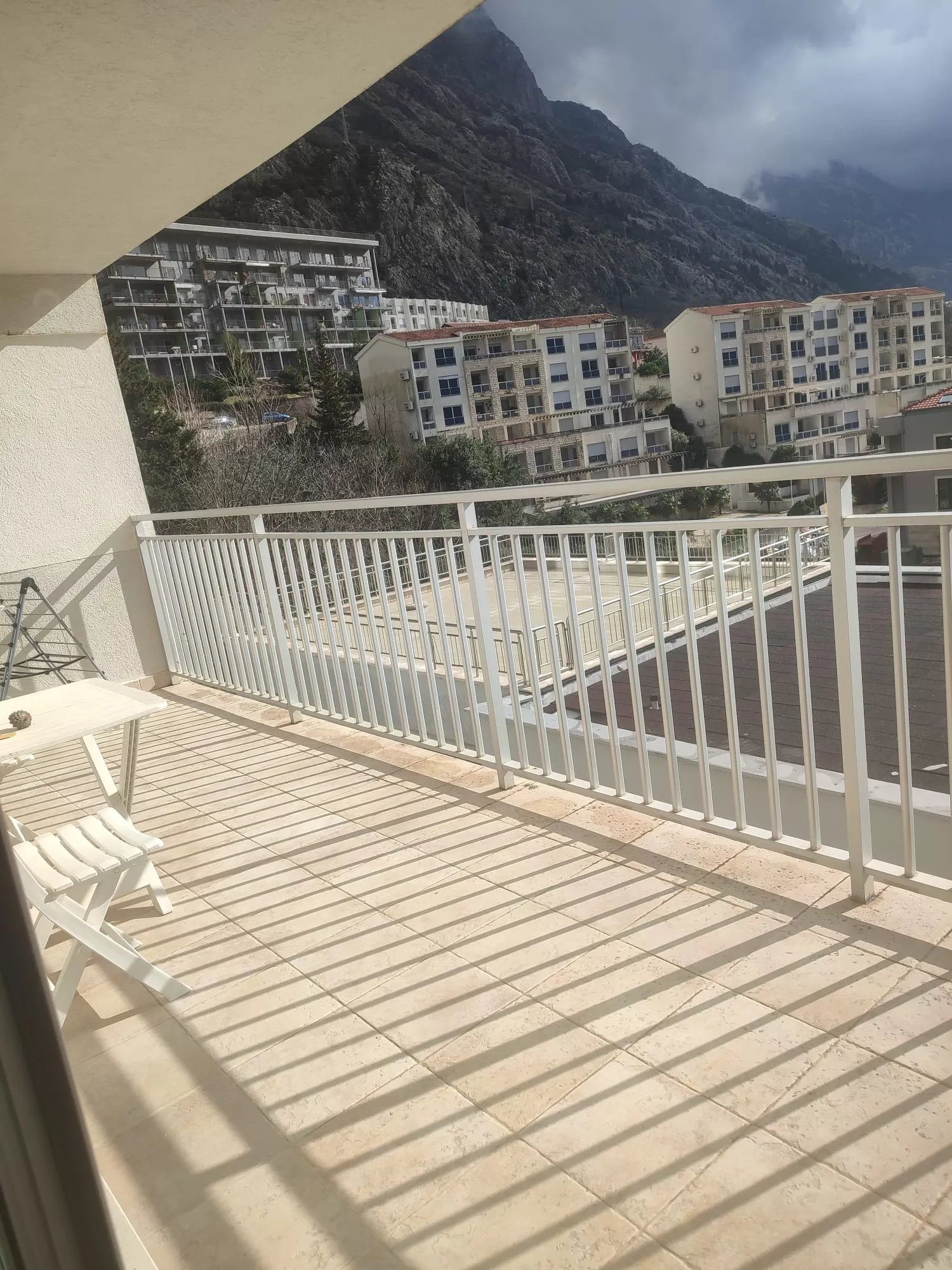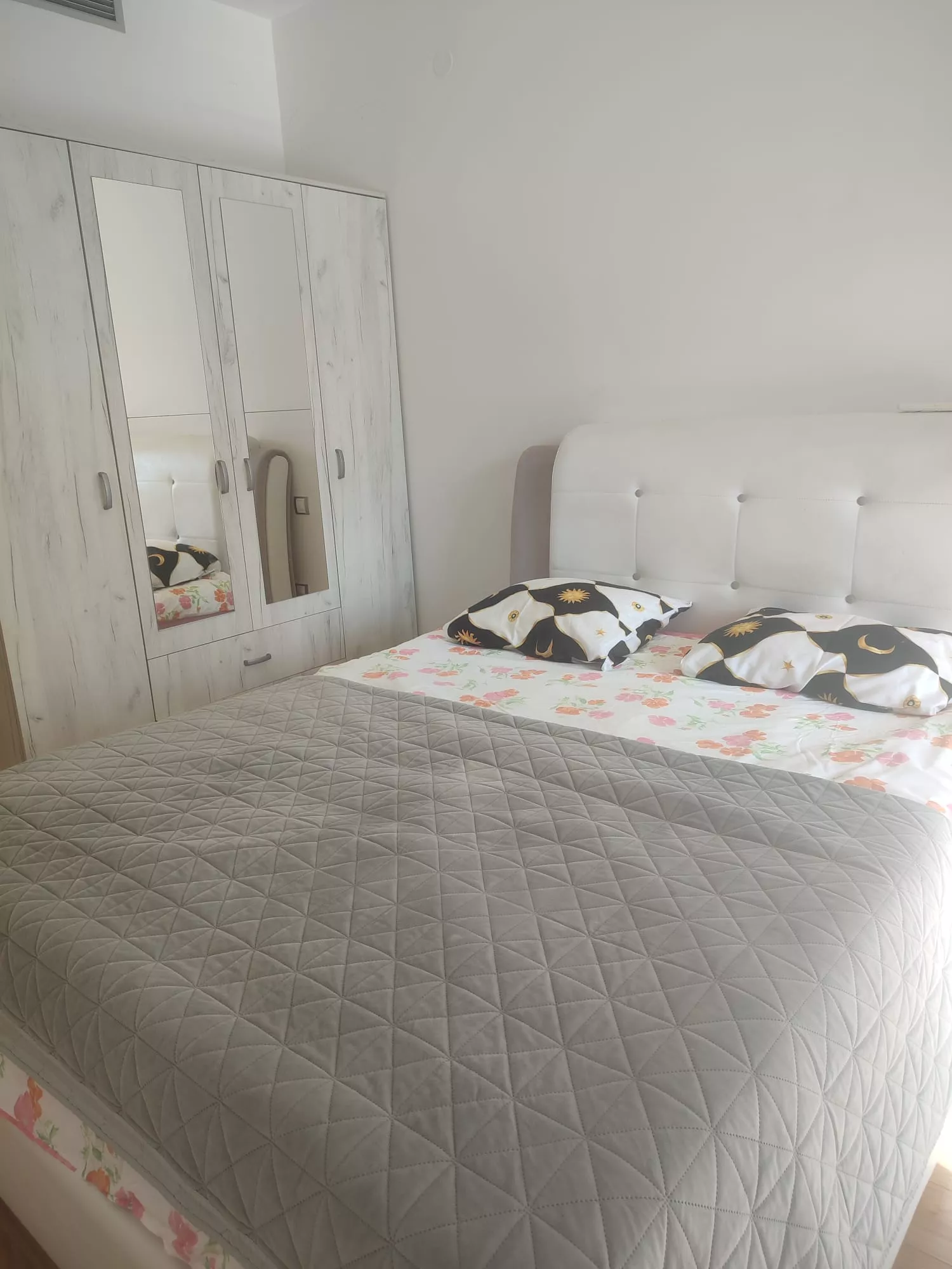 The apartment is dry and warm, equipped with a split air conditioning system. In summer, it is sunny yet pleasantly shaded due to the overhanging balcony.