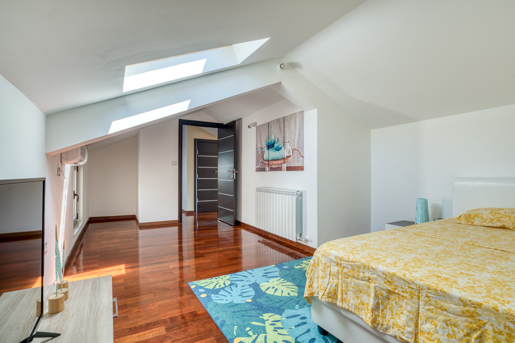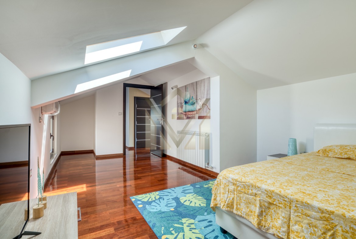 Üst katta, her biri kendi banyosuna sahip iki yatak odası, ek bir banyo, bir galeri, geniş bir gardırop ve ikinci bir teras bulunmaktadır; bu da özel ve sakin bir dinlenme alanı yaratmaktadır.